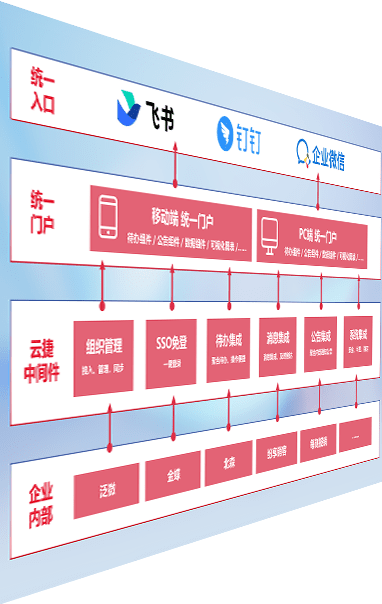 对协作平台提供支持服务,,,,支持企业应用与协作平台对接,,包含组织同步、、、、消息集成、、待办集成等。。。。支持目前主流的协作平台:钉钉、、、企微和飞书。。。